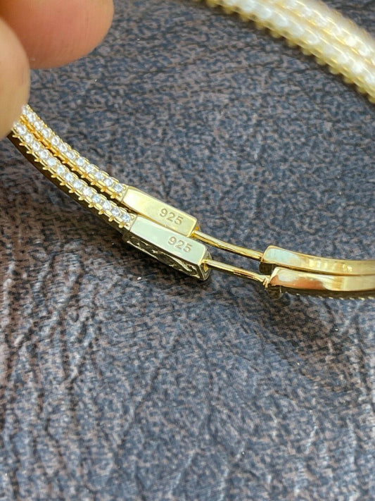1.9ct Moissanite Real 925 Silver Iced Diamond Nail Bangle Bracelet 6-7.5" Passes Diamond Tester