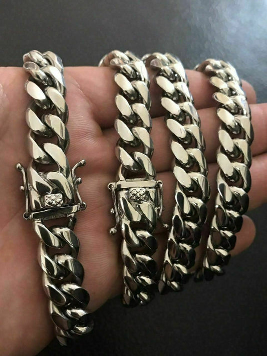 12mm Miami Cuban Link Bracelet & Chain Set Stainless Steel Looks Like Silver Men